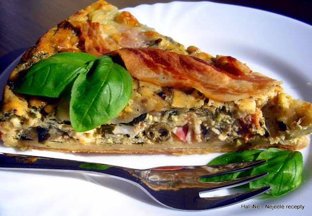- Důkladně promíchanou náplň nalijeme na předpečený korpus. Můžeme ji ještě posypat čerstvě mletým pepřem.